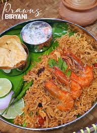 Fragrant Seeraga rice cooked with succulent, spiced prawns — served with flavorful dalcha and a sweet treat for a perfect coastal biriyani experience!